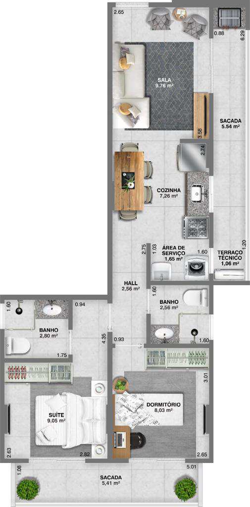 Projetado para atender diferentes perfis, o empreendimento oferece plantas inteligentes com aproveitamento máximo de cada metro quadrado: