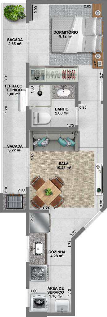 Projetado para atender diferentes perfis, o empreendimento oferece plantas inteligentes com aproveitamento máximo de cada metro quadrado: