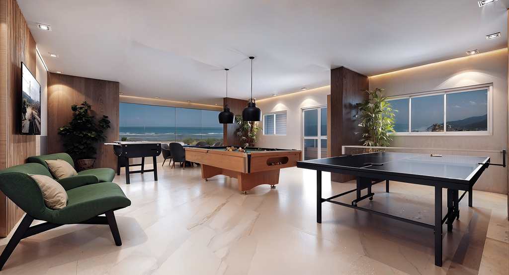 Acabamento Premium: Piso em porcelanato em todos os ambientes e detalhes que refletem a qualidade da Construtora Arco-Íris-Mar.