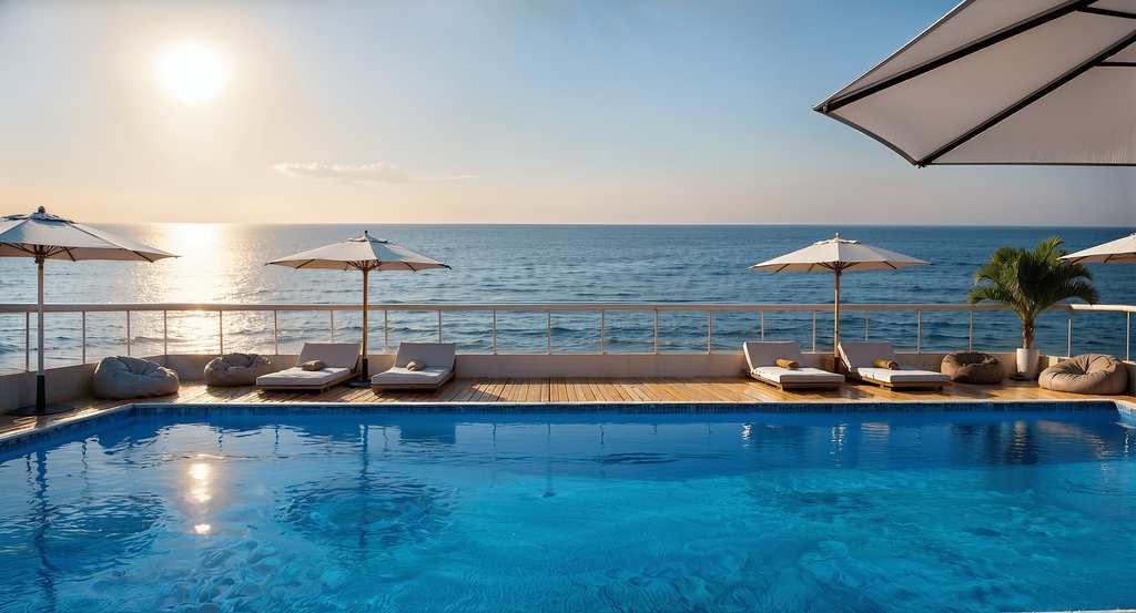 Piscina Adulto e Infantil com vista panorâmica para o oceano.
