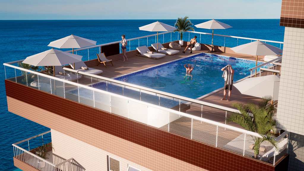 O lazer é dividido para maximizar a experiência do morador, com a piscina localizada na cobertura para garantir vista panorâmica: