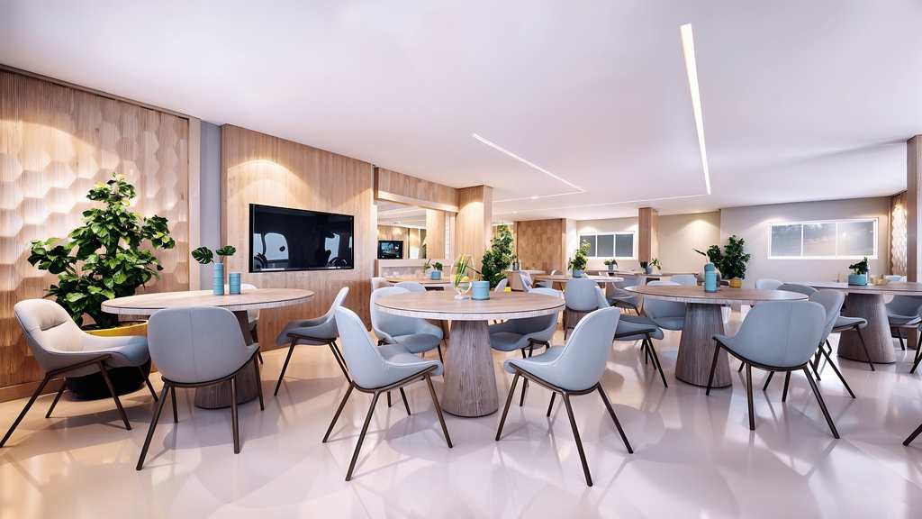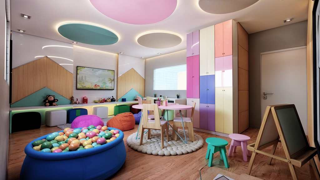 No Mezanino/Demais áreas: Academia (Espaço Fitness), Sauna, Salão de Festas, Salão de Jogos (Adulto, Juvenil e Infantil), Brinquedoteca, Pet Care, Salão de Beleza e Armários Home Box.